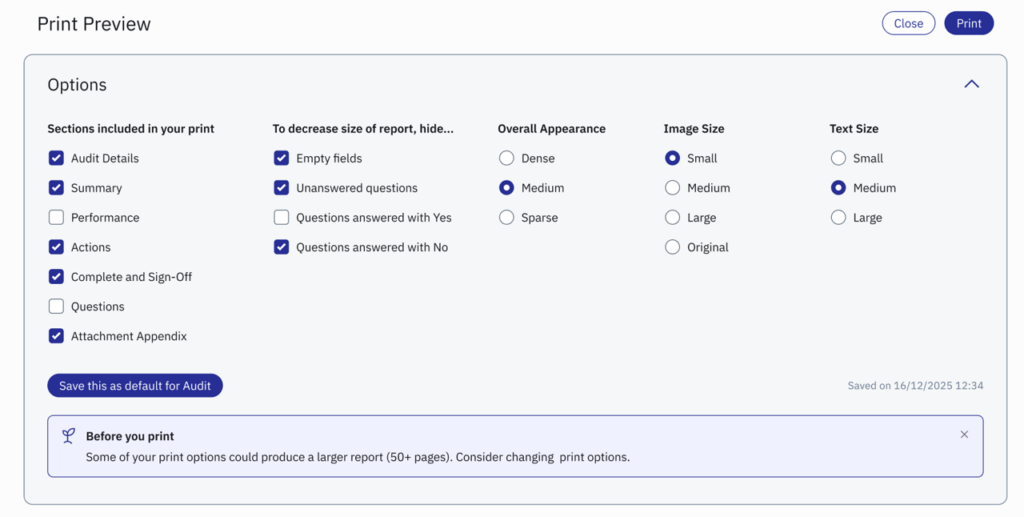 Users previously had to move between multiple tabs when configuring print layouts.